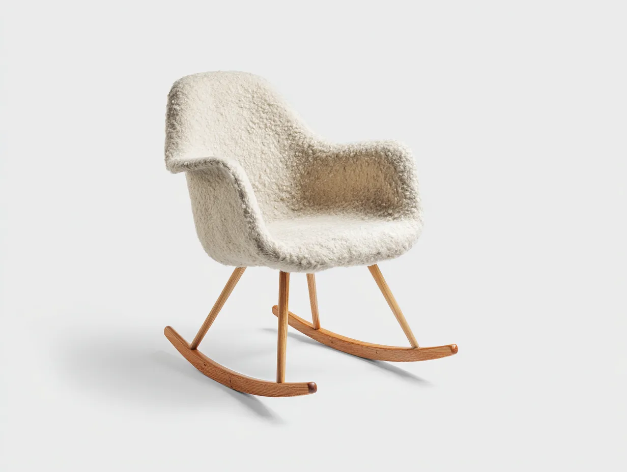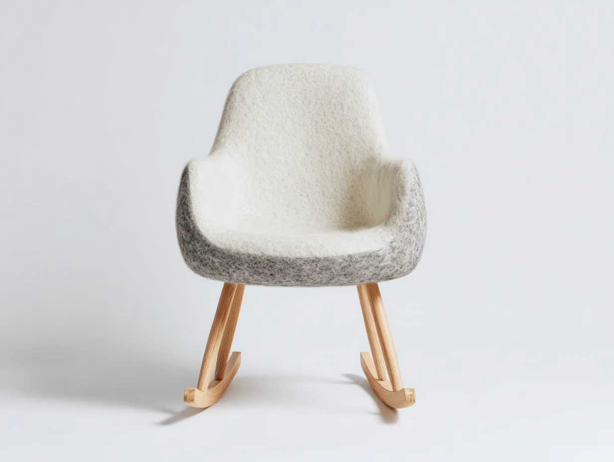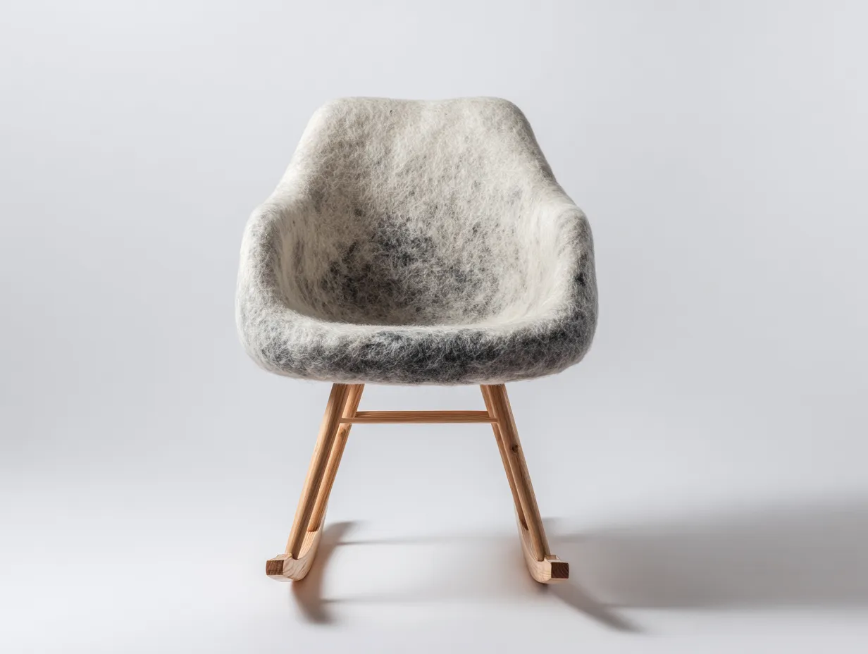 Sedia a dondolo - lana infeltrita-legno massello - 82x74x90 cm - bianco crema-legno naturale - design nordico moderno