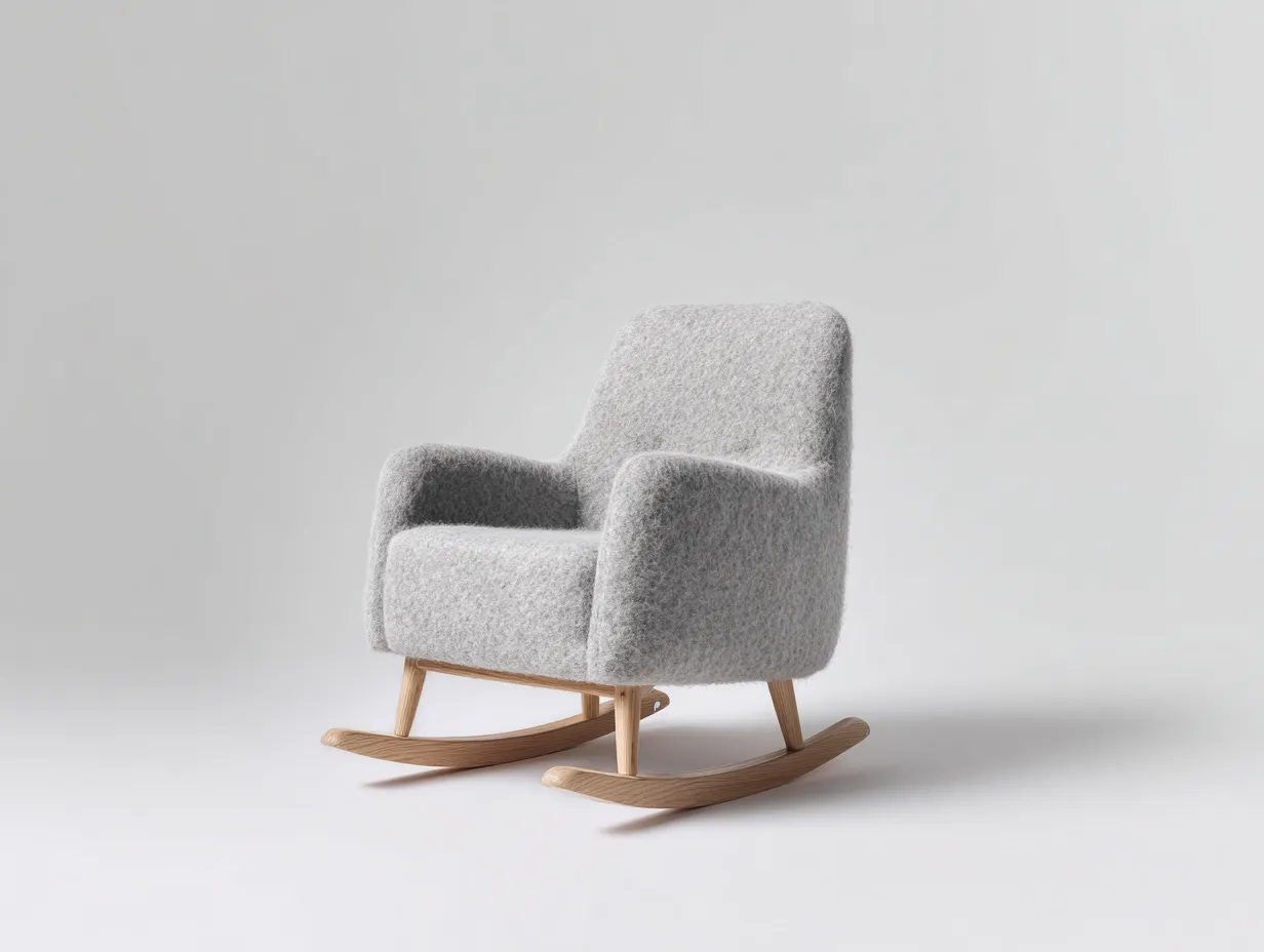Sedia a dondolo - lana infeltrita-legno massello - 82x74x90 cm - grigio chiaro-legno naturale - stile moderno nordico