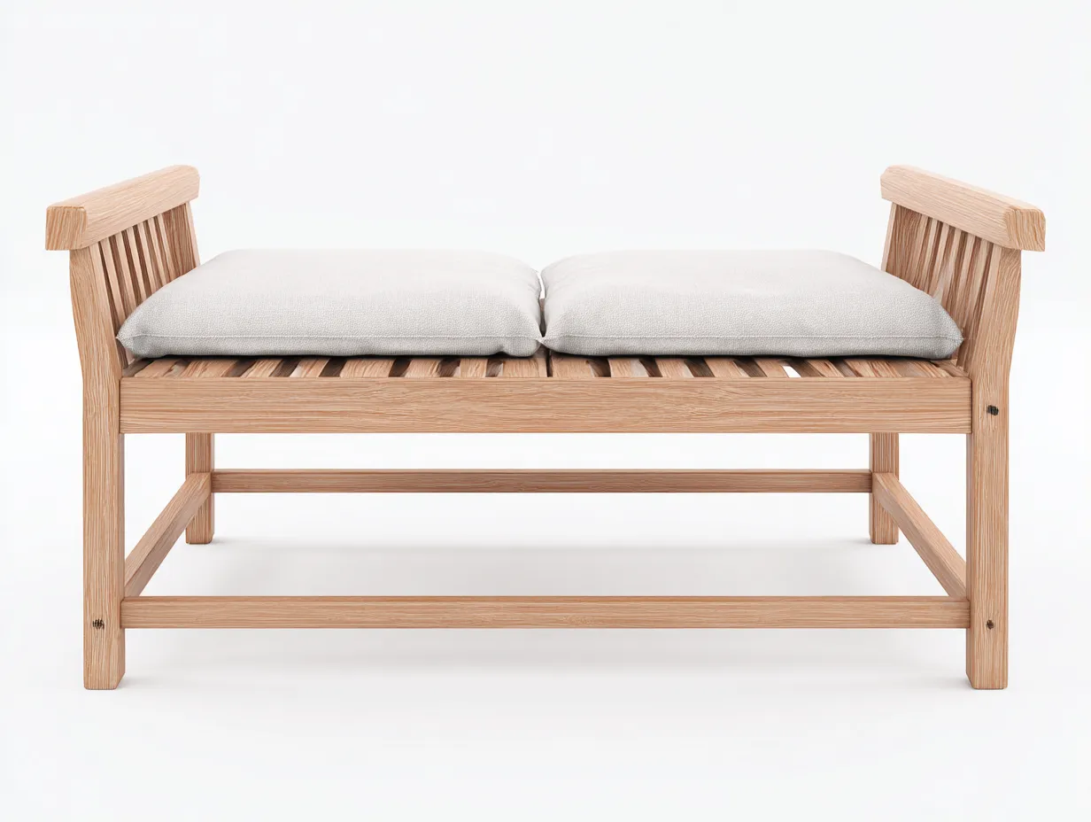 I cuscini migliorano il comfort della seduta. I braccioli laterali offrono un appoggio pratico e contribuiscono alla solidità complessiva della panca.